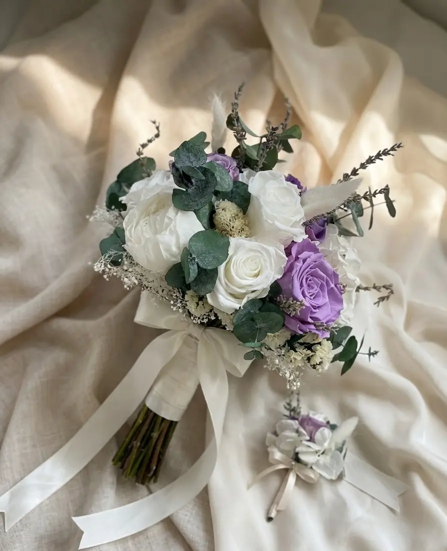 2. El boutonier del Novio es un pequeño arreglo floral que se coloca en la solapa de su traje. Debe coordinar con el ramo de la novia y puede incluir una flor similar o complementaria. Es un detalle elegante que no debe faltar en la vestimenta del novio.